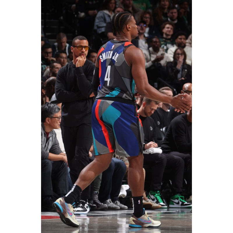 Dennis Smith Jr. from Brooklyn Nets last game against Boston Celtics played in Nike Kobe 6 basketball shoes.